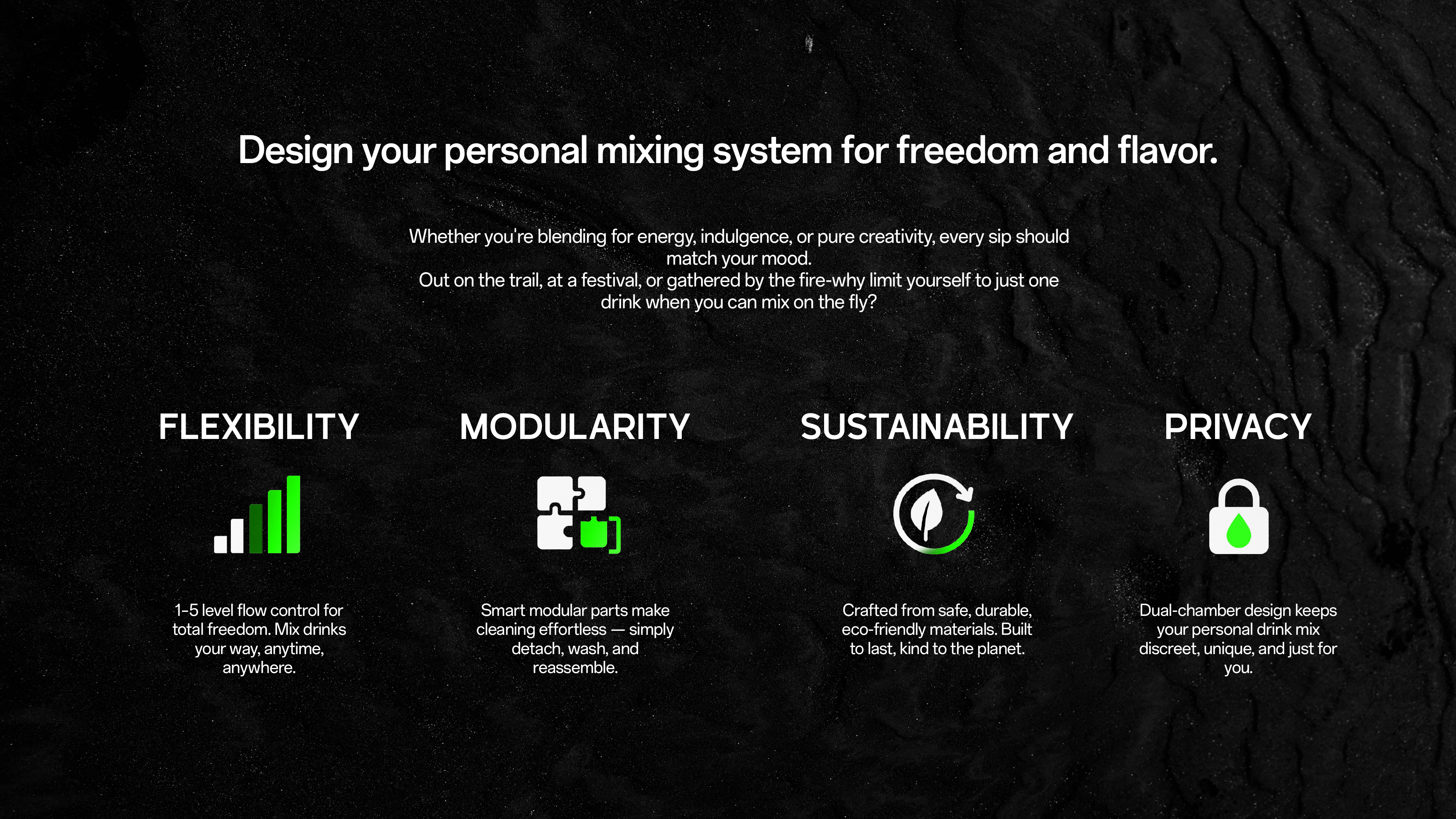 From Level 1 to Level 5, Mixool lets you fine-tune the mix between two chambers for just the right blend. Whether bold or mild, it’s your flavor, your rules.